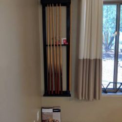 * Three-piece slate with Crown leather pockets * Four Que Sticks (2 wood + 2 titanium) with natural maple wall-mount holder * Two full sets of billiard balls (1) Frenzy NCAA Licensed University of Arizona set (1) Felson Numbered Marble set + que ball * University of Arizona leather table cover * Maple horsehair table brush * Standard triangle rack + 9 ball rack * Coordinate pick-up / set-up[Read more]