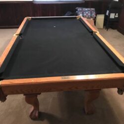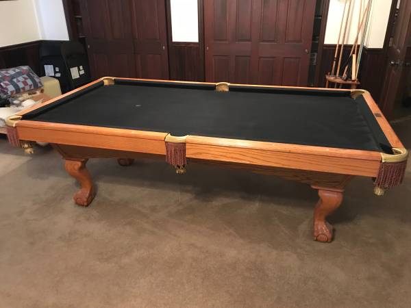 Absolutely beautiful condition, light oak. 1" backed slate, leather drop pockets.