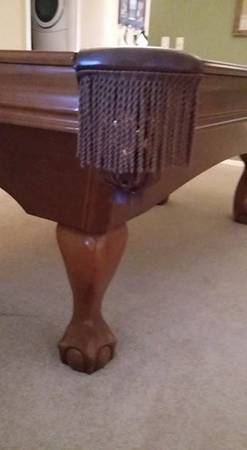7ft table, barely used comes with 4 full sized cues, 1 short, and one kid sized and all accessories Must arrange pick up and move.