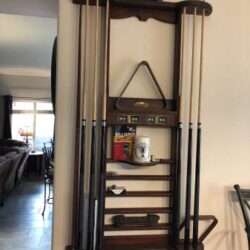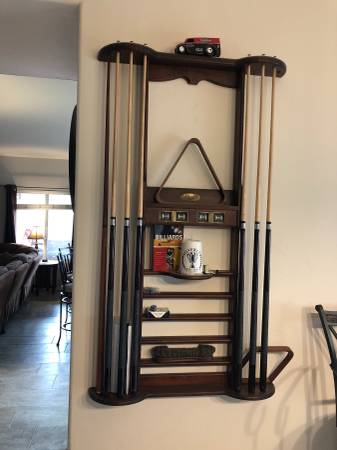 7ft table, barely used comes with 4 full sized cues, 1 short, and one kid sized and all accessories Must arrange pick up and move.