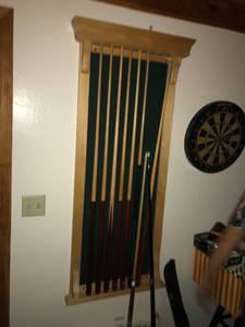 Olhousen pool table with 15 Dufferin brand pool cues , 2 cues rack, set of balls and more.