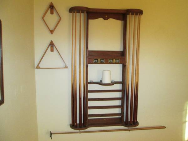 Connelly 8 ft Standard Cochise Natural Mesquite pool table with mesquite wood rack and 8 maple cues.