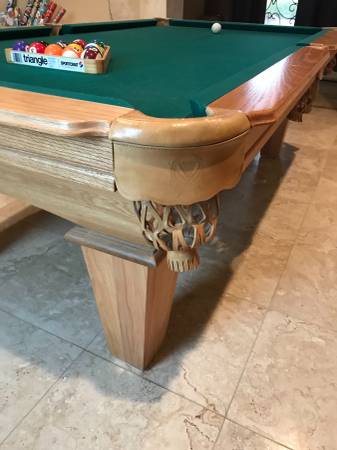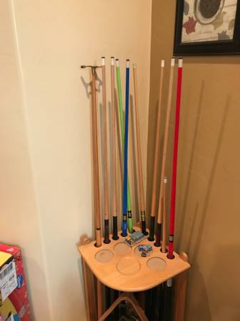 7ft table, barely used comes with 4 full sized cues, 1 short, and one kid sized and all accessories Must arrange pick up and move.