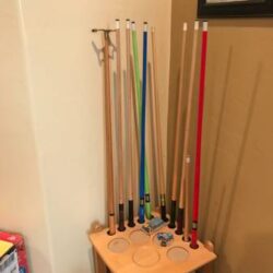 * Three-piece slate with Crown leather pockets * Four Que Sticks (2 wood + 2 titanium) with natural maple wall-mount holder * Two full sets of billiard balls (1) Frenzy NCAA Licensed University of Arizona set (1) Felson Numbered Marble set + que ball * University of Arizona leather table cover * Maple horsehair table brush * Standard triangle rack + 9 ball rack * Coordinate pick-up / set-up