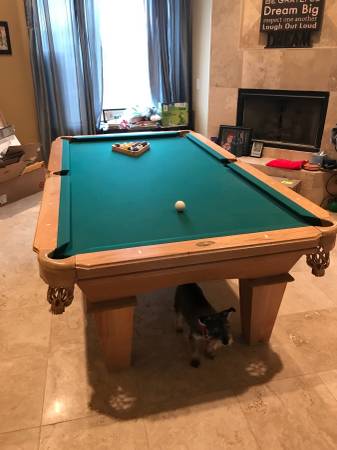 POOL TABLE SOLD Beautiful 8-foot pool table. Excellent condition. Including all equipment and pool table light. You must arrange for pick up and delivery.