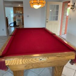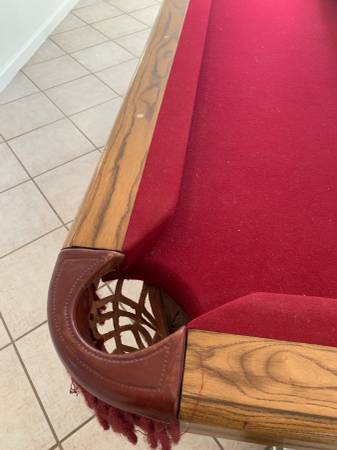 Beautiful Connelly pool table in good condition. Unique red felt table.