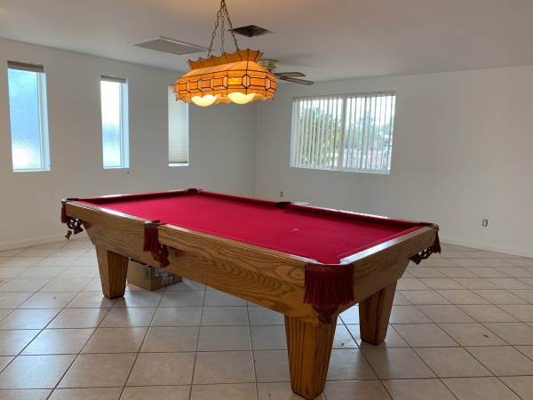 All pockets and wood in great condition. Comes with pool hall light as well.