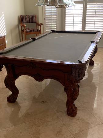 POOL TABLE SOLD Beautiful 8-foot pool table. Excellent condition. Including all equipment and pool table light. You must arrange for pick up and delivery.