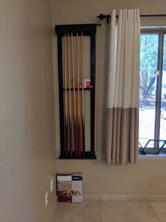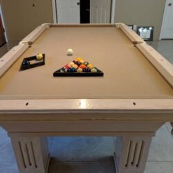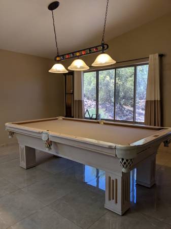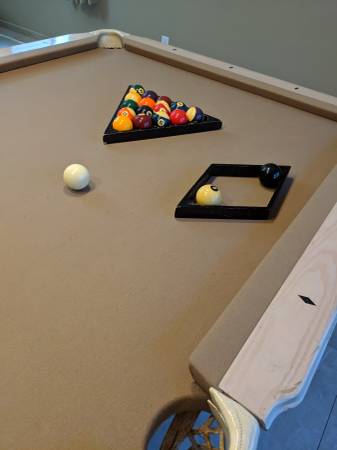 7ft table, barely used comes with 4 full sized cues, 1 short, and one kid sized and all accessories Must arrange pick up and move.