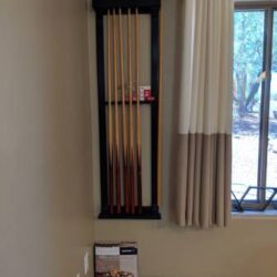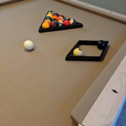 * Three-piece slate with Crown leather pockets * Four Que Sticks (2 wood + 2 titanium) with natural maple wall-mount holder * Two full sets of billiard balls (1) Frenzy NCAA Licensed University of Arizona set (1) Felson Numbered Marble set + que ball * University of Arizona leather table cover * Maple horsehair table brush * Standard triangle rack + 9 ball rack * Coordinate pick-up / set-up