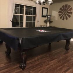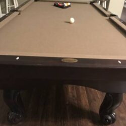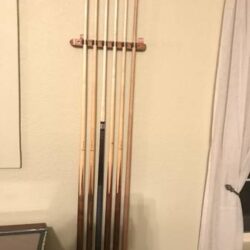 Includes - Arizona Wildcats cover, rack, chalk, brush, 5 cue sticks & bridge. In good condition. Pockets are leather, dark walnut. Must pick up or have a company come get. Connelly did it for us at a reasonable price and they were negotiable.